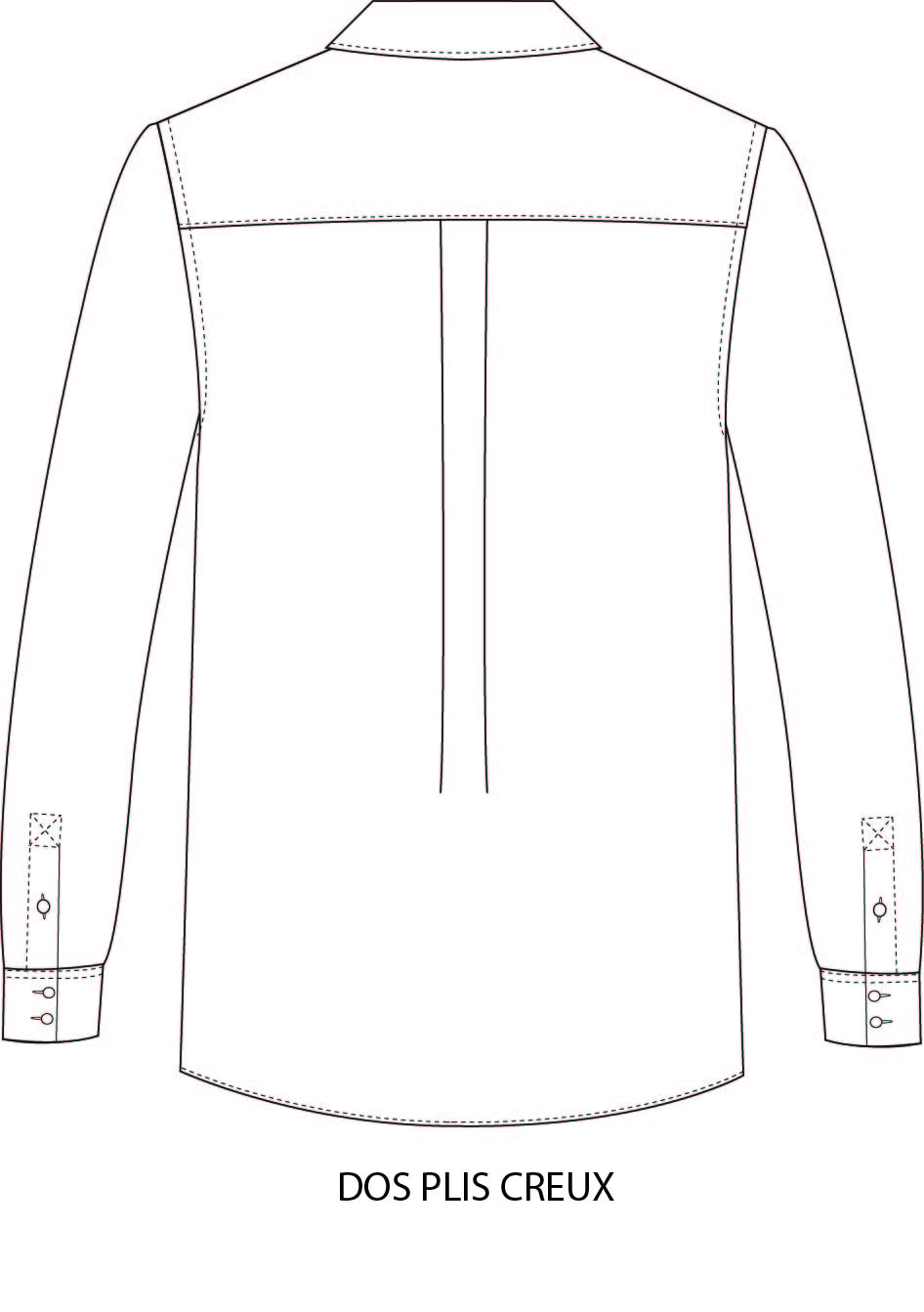 The back with a box pleat is a back composed of a single fold, in the middle of the back. This cut is only slightly curved, by the sides seams. It gives more comfort to the gestures of the upper limbs and brings a sport style to the shirt. Ideal for wearing the shirt without jacket.